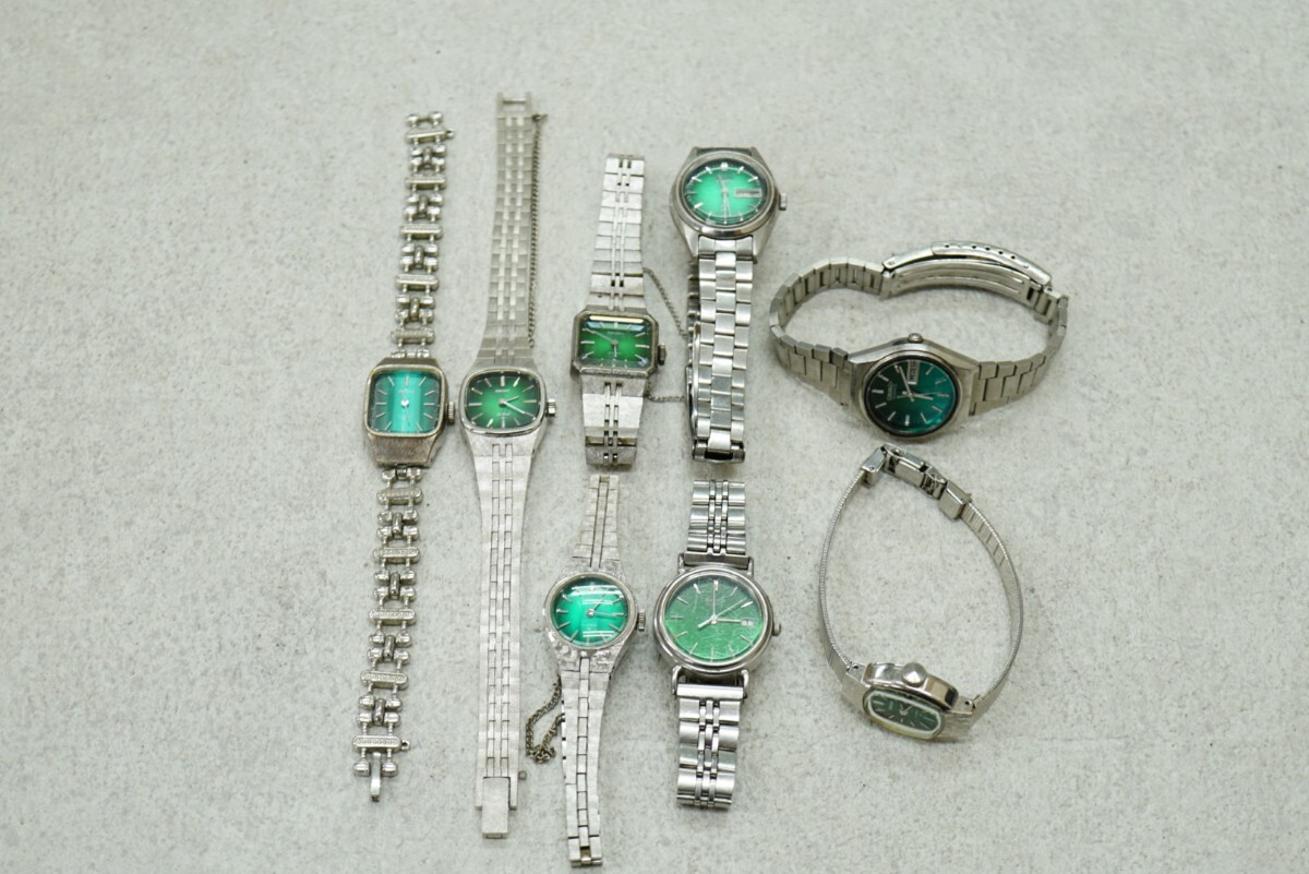 - F404 SEIKO/セイコー 緑文字盤 レディース 腕時計 8点セット クォーツ ブランド アクセサリー 大量 まとめて おまとめ まとめ売り 不動品