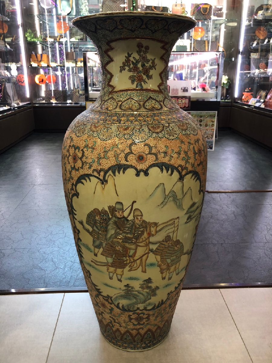 - ◆【直接引取限定!!長野県諏訪市】薩摩焼? 大型 飾壷 全高約91cm 戦支度の武士の図 色絵 金彩 中古【In-store pickup only】◆14305