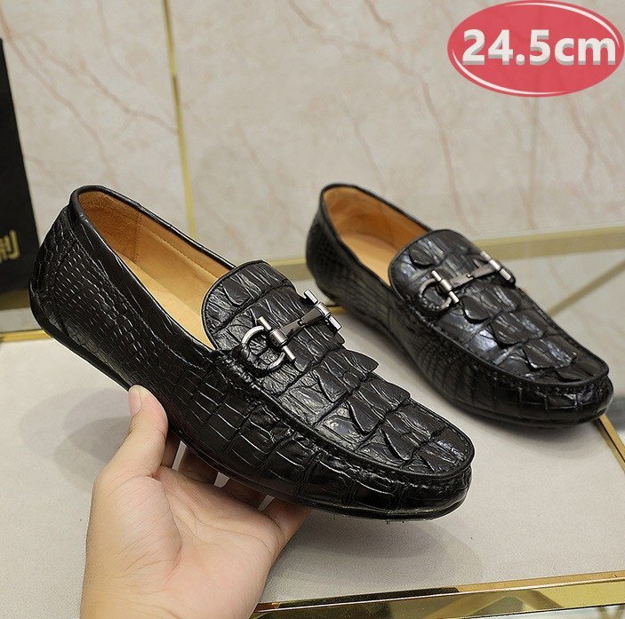 - クロコダイルレザー ビジネスシューズ 最高級 ワニ革 クロコダイル 靴 メンズシューズ 革靴 ブラック 24.5cm 【n787】