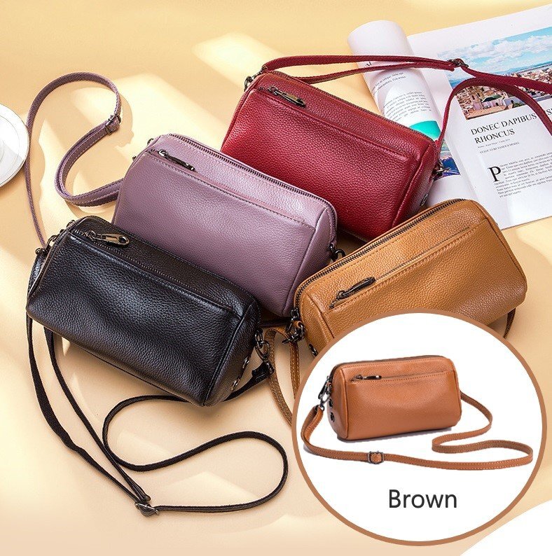 - ショルダーバッグ 牛皮 ブラウン レザー シンプル 小物 スマホ カード 鍵 たばこ など n532
