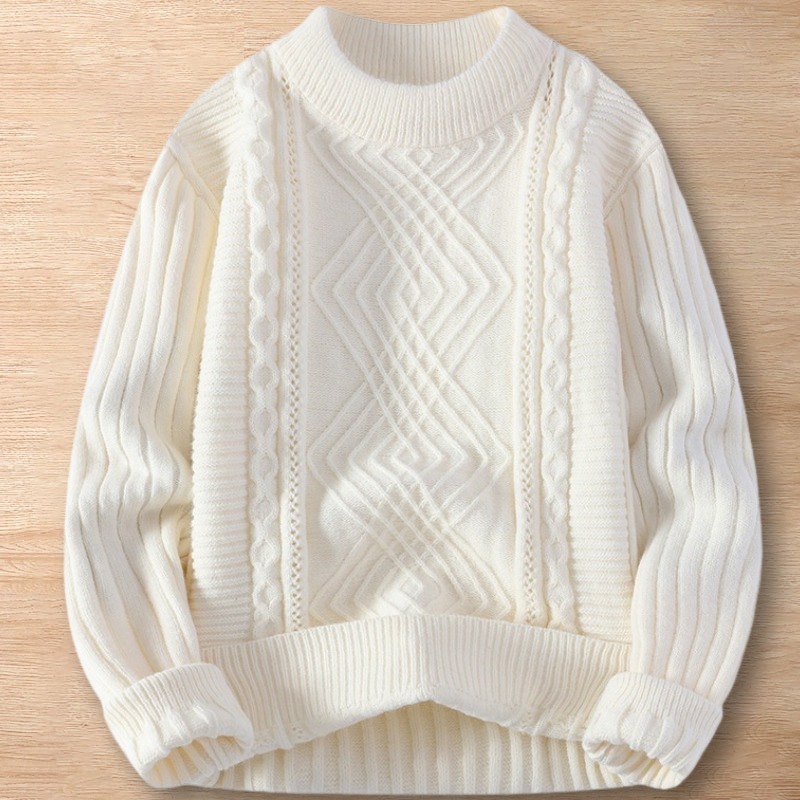 > Y103-2XL 白 新品DCKMANY ウール混 ニットセーター 厚手 暖かい 秋冬 プルオーバー ラウンドネック メンズ ケーブル編み 無地 トップス