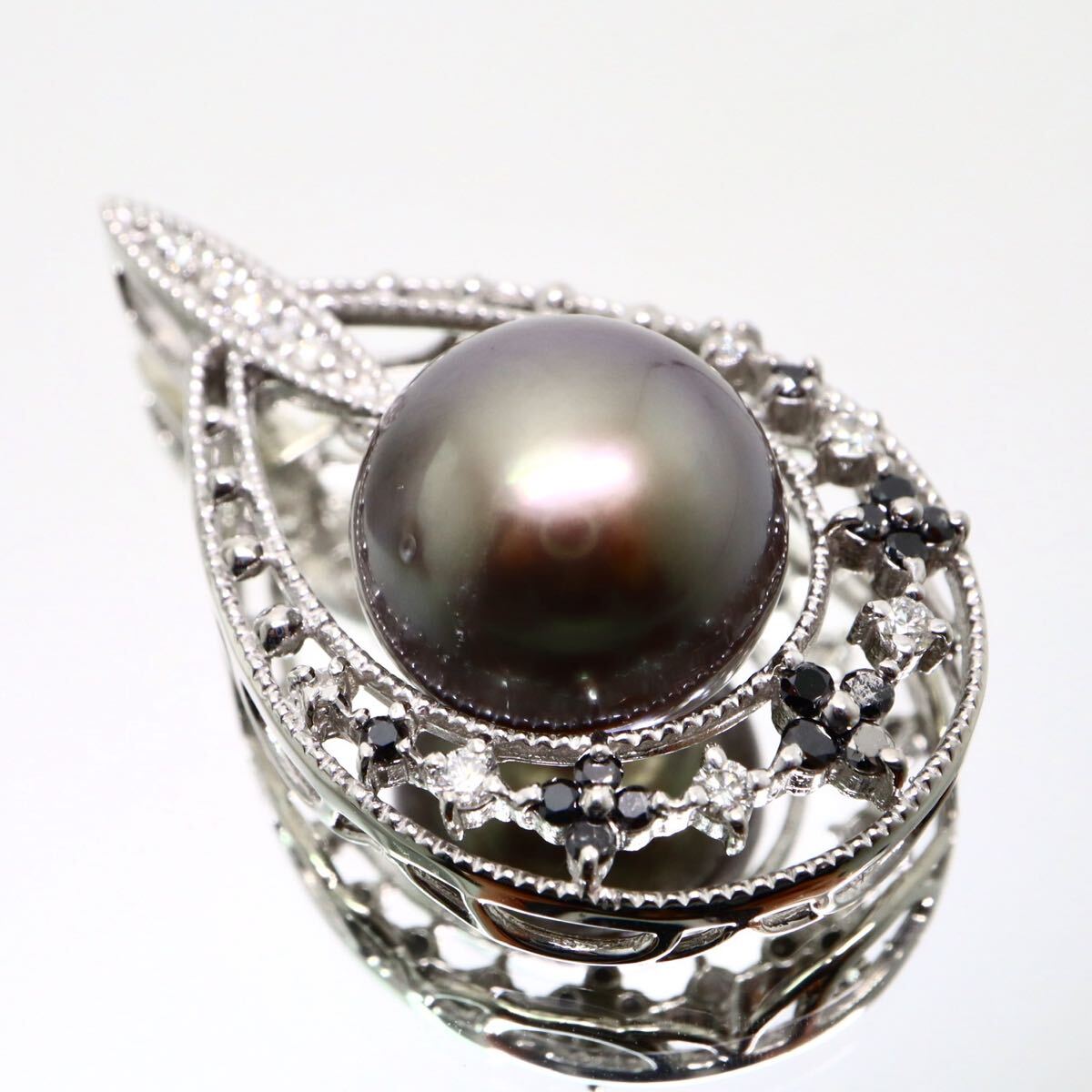 - K18WG!!0.31ct!!◆南洋黒蝶真珠/天然ダイヤモンド/天然ブラックダイヤモンドペンダントトップ◆N 約6.2g ネックレス EF3/ X666