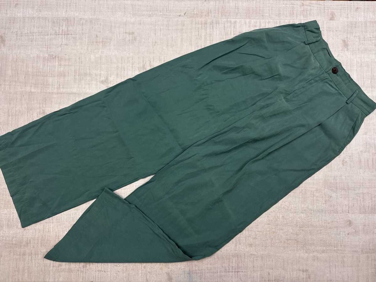 > ザラ ZARA きれいめ マニッシュ トラッド タック入り ストレート ワイド スラックス パンツ ボトムス レディース S 青緑