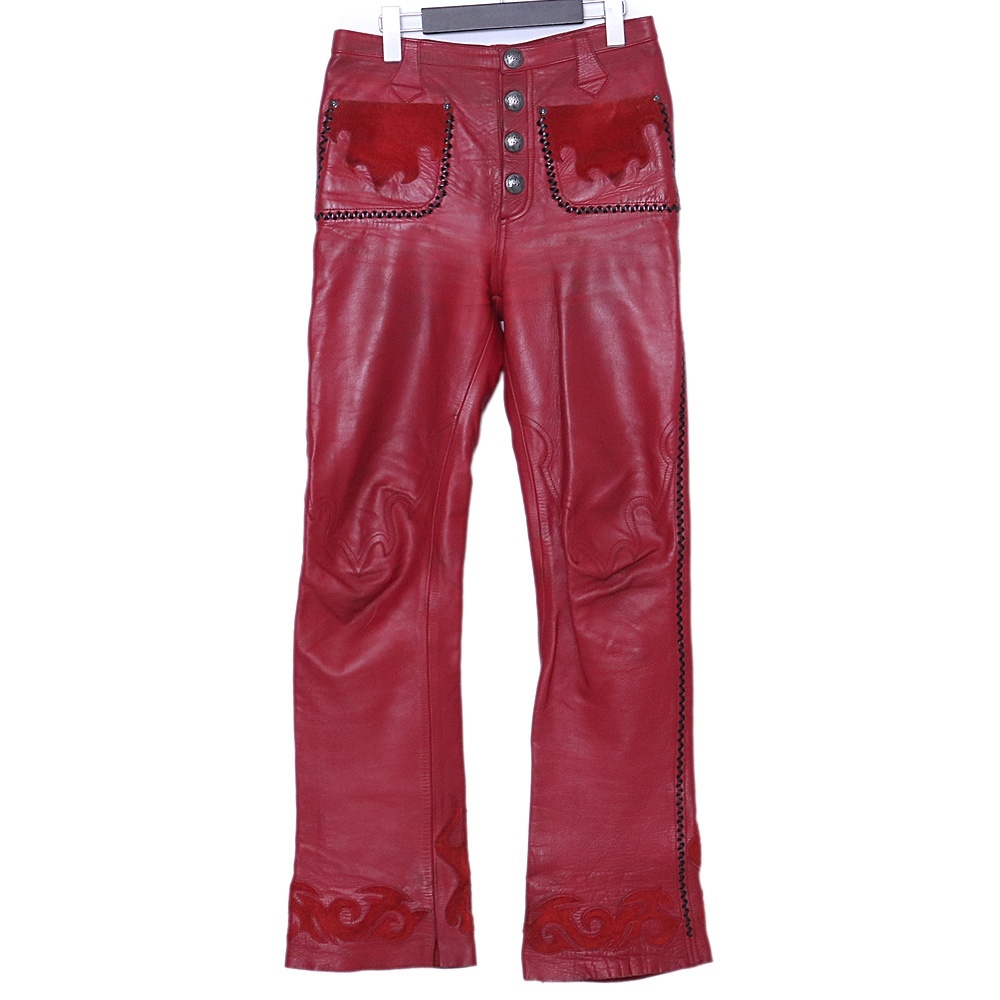 - SKKIN FX レザー編込スエード切替ファイヤーパターンパンツ Mサイズ レッド スキン フレア ブーツカット