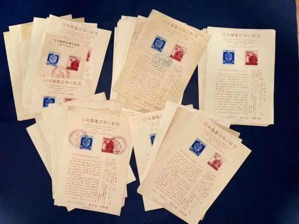 - ▼日本切手/小型シート/日本国憲法施行記念/48枚/記念印/池田/名古屋/東京▼sk244