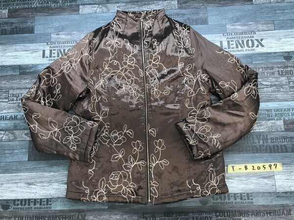 - LA BREZZA レディース 花ステッチ刺繍 中綿入 ジップジャケット L 茶色