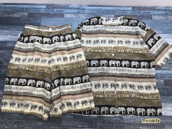 - (株)アールジーコレクション レディース 総柄 象 半袖ブラウス・キュロット 日本製 ポリエステル 上下セットアップ 9AR 茶ベージュ