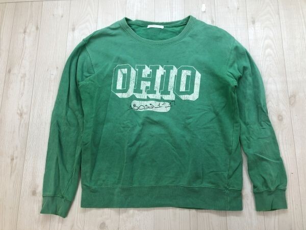 > cepo セポ アメカジ ワーク カレッジ ダメージ グランジ フェード加工 スウェット トレーナー レディース コットン100% 緑