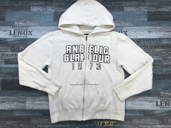 > ANGELIC GLAMOUR レディース 裏起毛 英字 スウェットジップパーカー 大きいサイズ LL アイボリー 綿ポリエステル