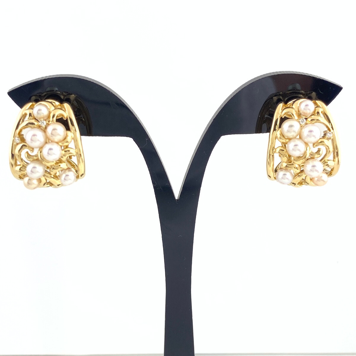 > タサキ TASAKI パール デザインイヤリング YG イエローゴールド 真珠 メレダイヤ イヤリング K18 パール レディース 【中古】