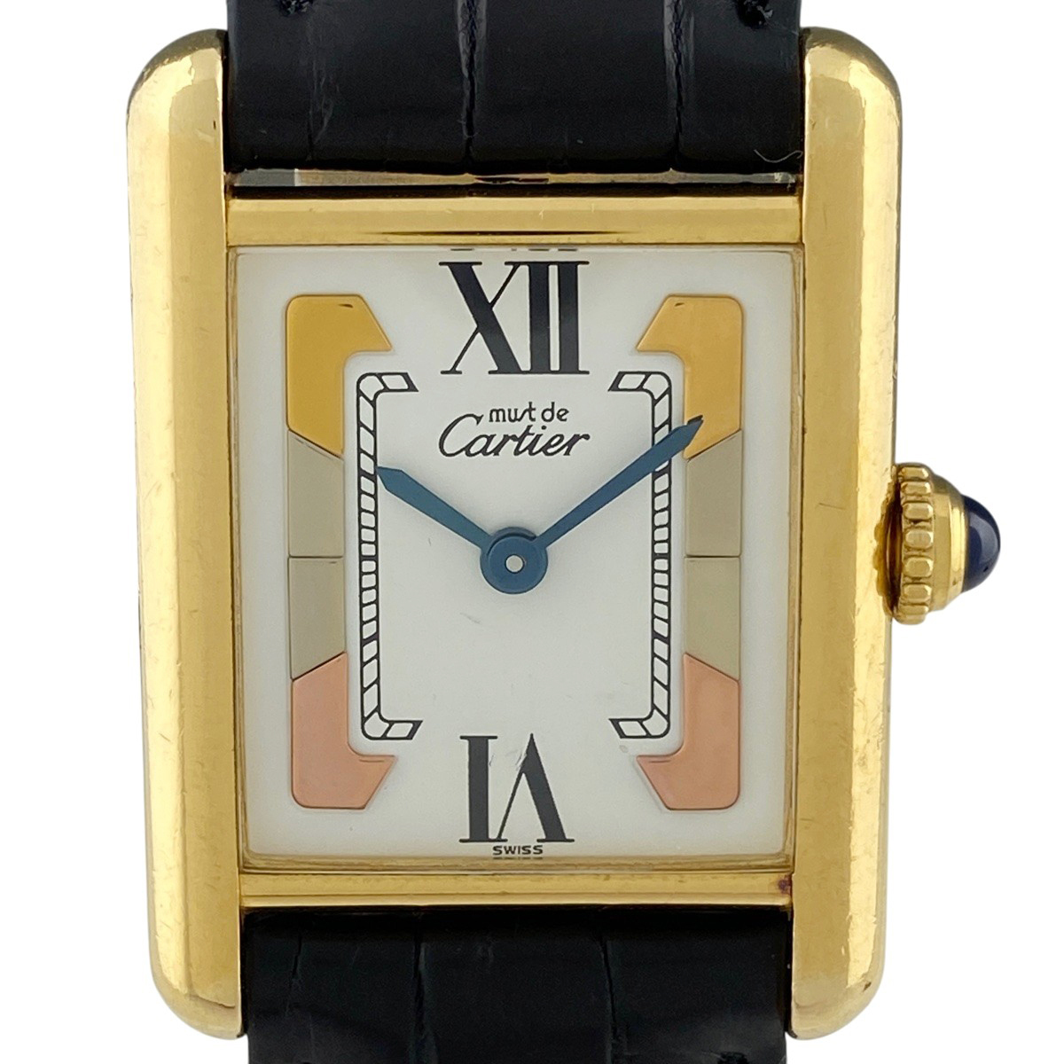 - カルティエ CARTIER マストタンク SM ヴェルメイユ トリニティ W1006354 腕時計 シルバー925 GP レザー クォーツ ホワイト レディース 中古