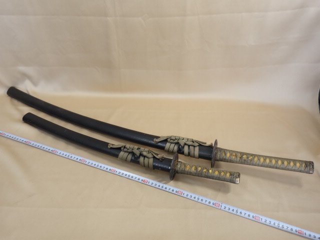 - T978 模造刀 打刀 全長100cm 脇差 全長65cm 2本まとめて / 日本刀 レプリカ 武具 殺陣 小道具 ※詳細に追加画像あり