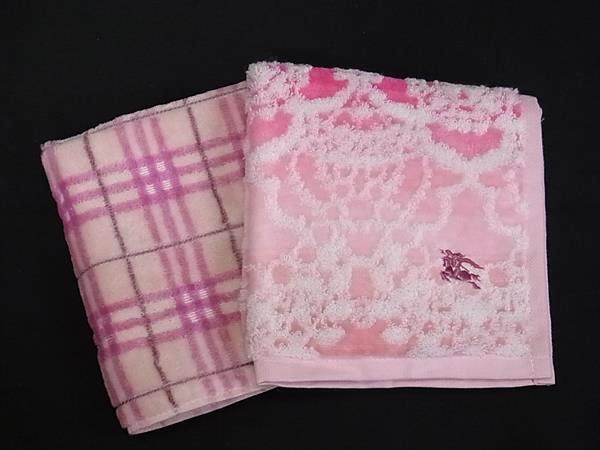 > ■新品同様■ BURBERRY バーバリー ノバチェック ハンドタオル タオルハンカチ ハンカチーフ レディース 2点セット ピンク系 DK6348