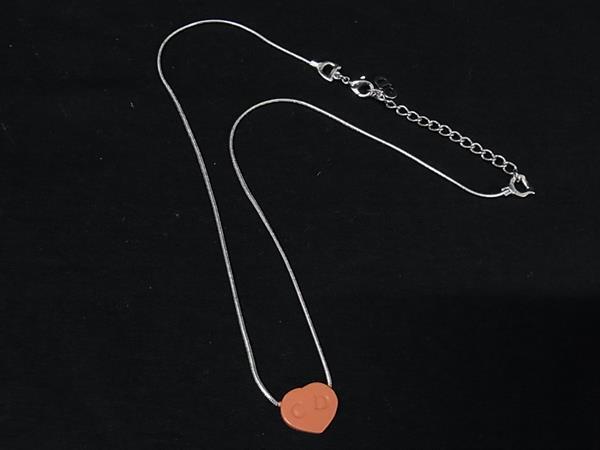 > 1円 ■美品■ ChristianDior ディオール ハート ネックレス ペンダント アクセサリー レディース シルバー系×オレンジ系 FS6914