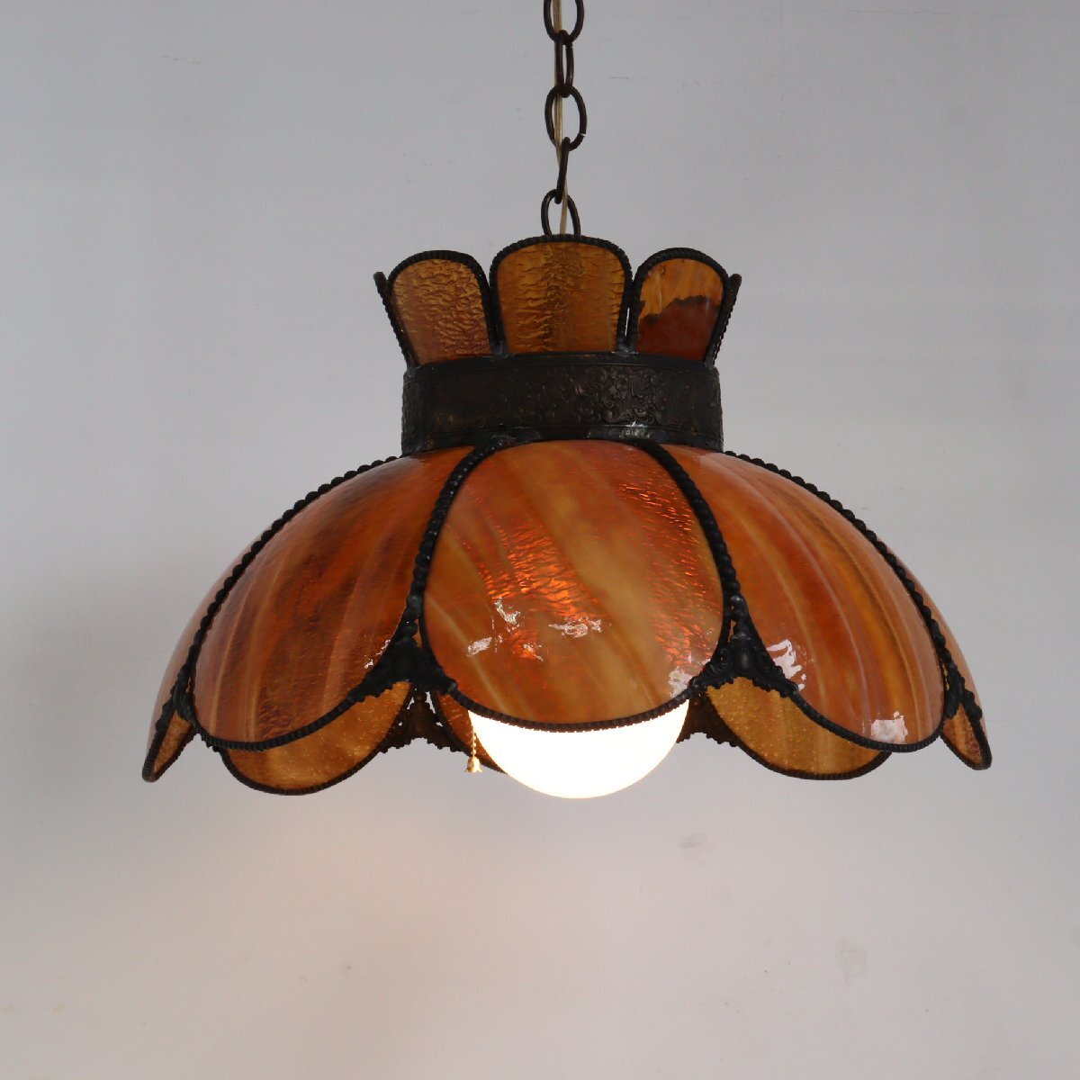 > 70s ヴィンテージ スラグガラス ペンダントランプ / アメリカ USA アンティーク 吊り下げランプ カフェ 照明 シーリング#702-40-212-99