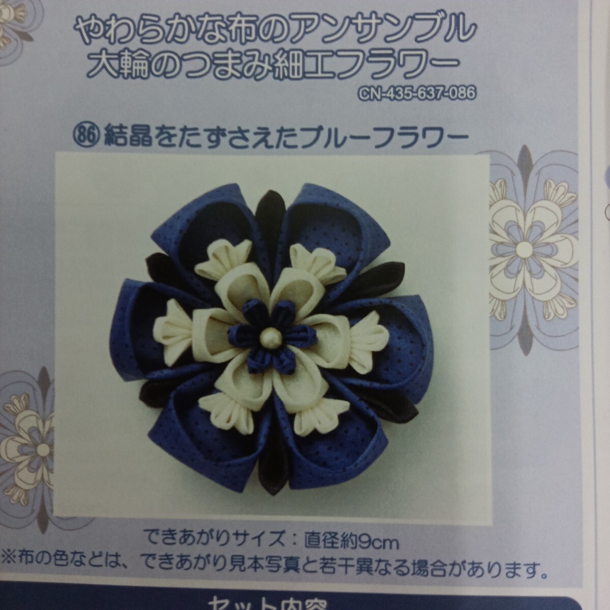 - 100円〜 手芸キット★フェリシモ・大輪のつまみ細工フラワー【結晶をたずさえたブルーフラワー】