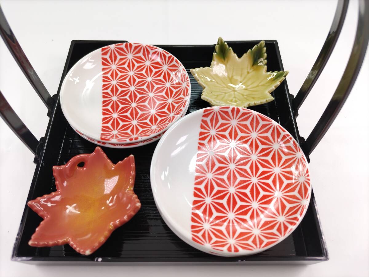 > 讀龜【新品】赤海波 豆皿 5枚セット 小皿 醤油皿 銘々皿 和風 レトロ 日本 陶器 焼物 皿 節句 おもてなし 行事 波 和皿 皿 昔ながら