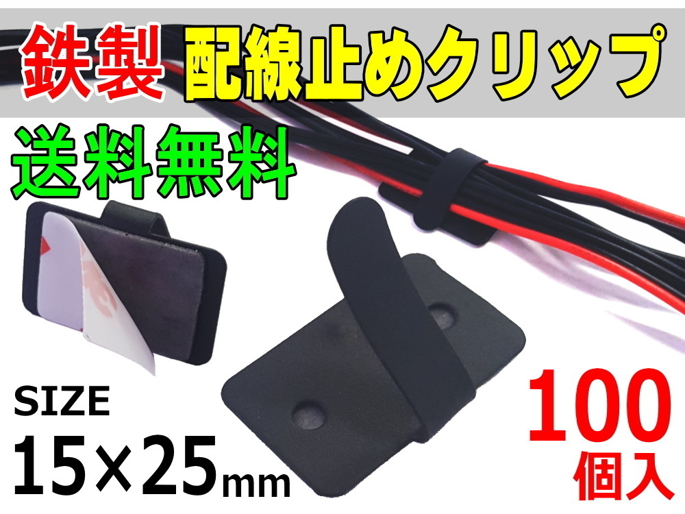 - 鉄クリップ 100個1セット 15mm×25mm黒ブラック3M両面テープ付きカーナビ取り付けスチール配線留め(止め金具)クランプ車内のコード固定 0