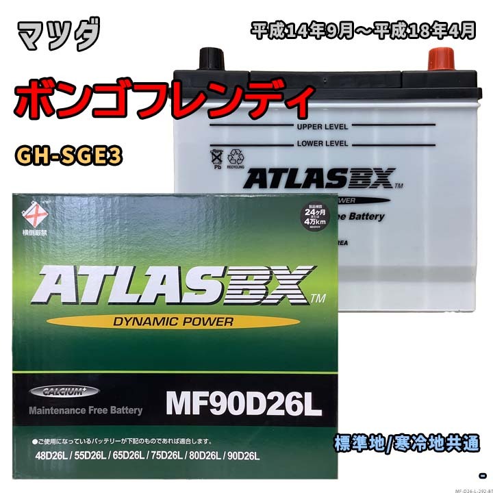 - バッテリー ATLAS MF90D26L マツダ ボンゴフレンディ GH-SGE3 平成14年9月~平成18年4月 対応 D26L 互換 292