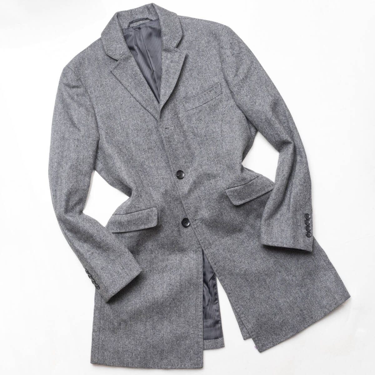 - 【表記M】 美品 『SUIT SELECT』 ツイードチェスターコート ウール混 本切羽 3ボタン グレー 冬 メンズ