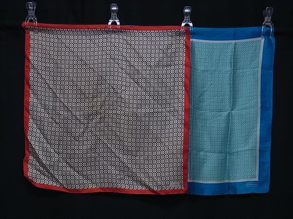 > ■美品〜■ COACH コーチ シグネチャー シルク100% ハンカチーフ ポケットチーフ 2点セット まとめ売り レッド系×ブルー系 DK6413