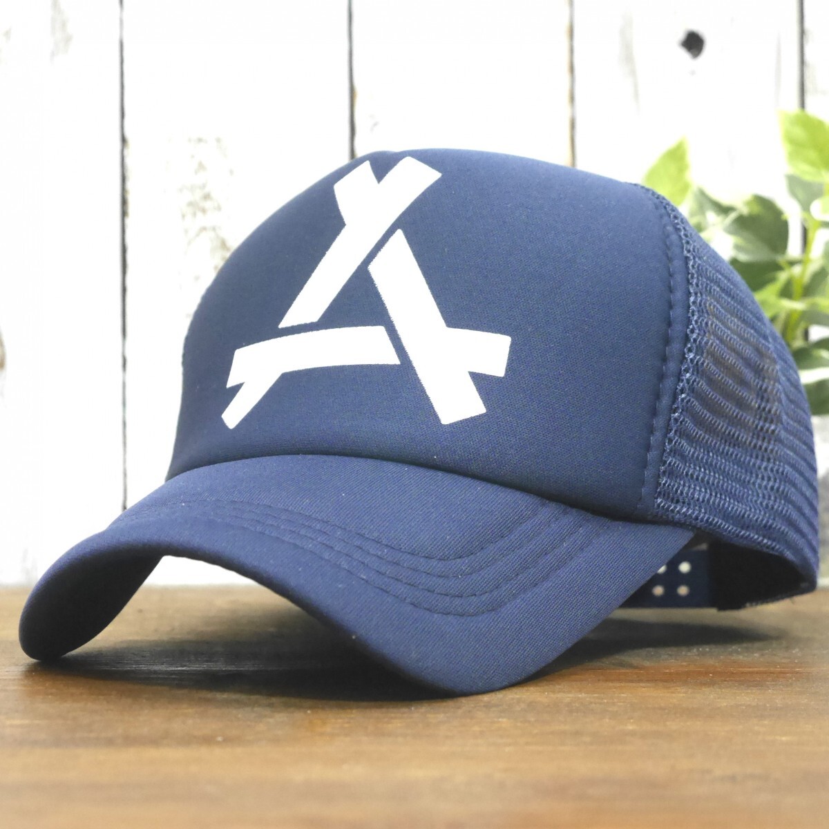 - 送料450円 メッシュキャップ ロゴ シンプル ネイビー UV対策 サイズ調整可能 男女OK メンズ レディース