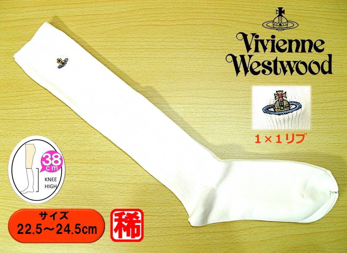 > 【レッグウェア★未使用品】VivienneWestwood◆ビビアン◆細リブ 白 ハイソックス◆1×1リブ◆22.5-24.5cm◆38cm丈◆稀少◆
