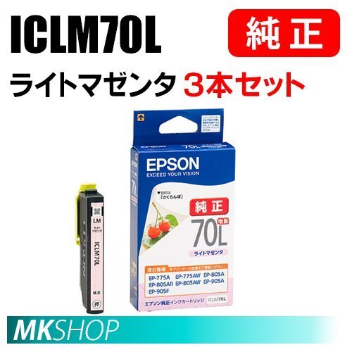 - EPSON 純正 インクカートリッジ ICLM70L ライトマゼンタ 増量 3本セット(EP-306/315/706A/775A/775AW/776A/805A/805AR/805AW)