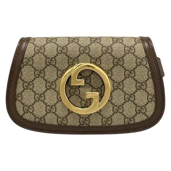 > グッチ GUCCI ウエストポーチ 703807 インターロッキングG/GGプラス・GGスプリーム レザー ダークブラウン×ベージュ 美品 バッグ