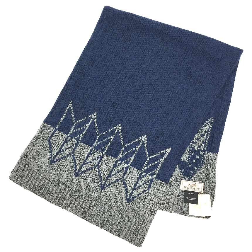 - 送料無料 HERMES エルメス マフラー ECHARPE MAILLE H393741T 03 ウール カシミヤ ネイビー 未使用 aq8916