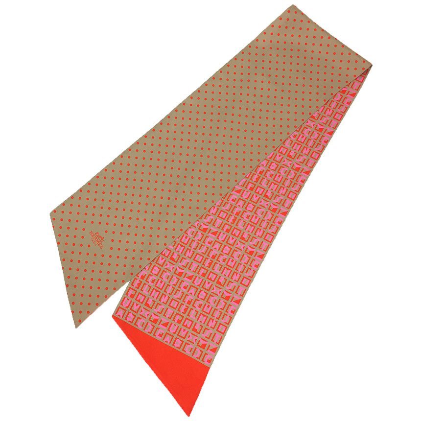 - セール 全国送料無料 HERMES エルメス MAXI TWILLY CUT マキシツイリー・カット ドット アルファベット リバーシブル タイスカーフ aq9659