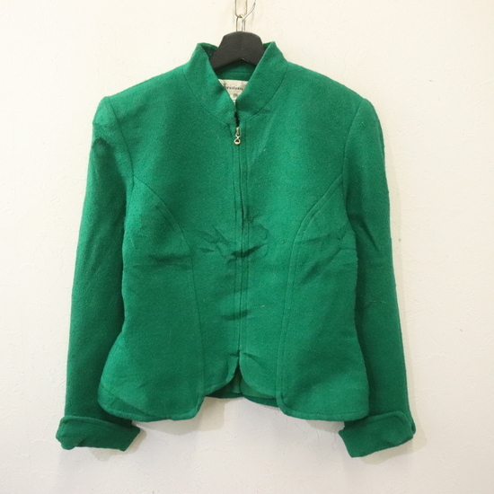 > L144 90sビンテージ ChristianDior ウールジャケット USA製■1990年代製 表記サイズ8 レディース グリーン フルジップ アメカジ 古着 80s
