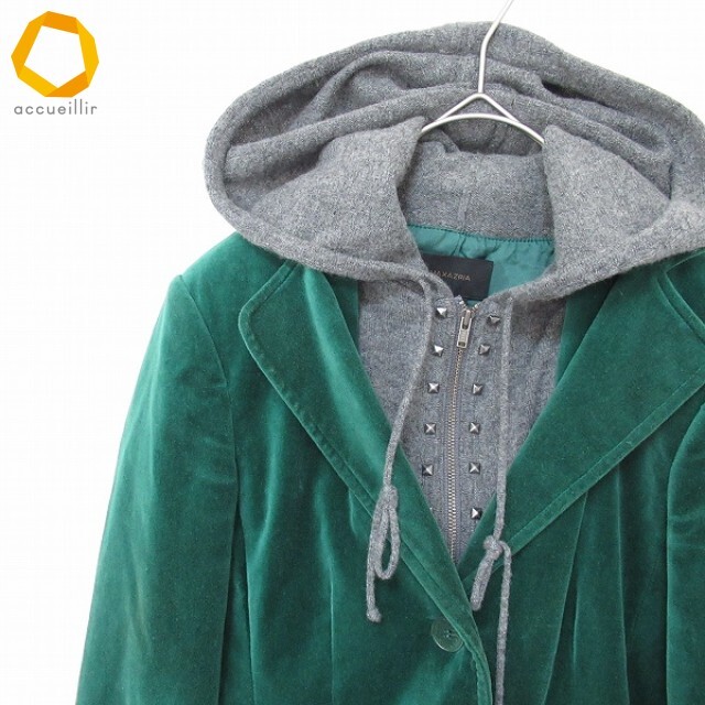 - BCBGマックスアズリア 重ね着風 ジャケット フーディー スタッズ カシミヤ混 レディース [w977380ss]