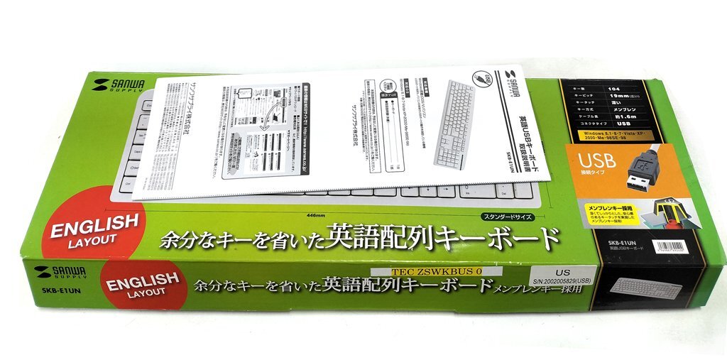 サンワサプライ製の英語キーボード、SKB-E1UNです。