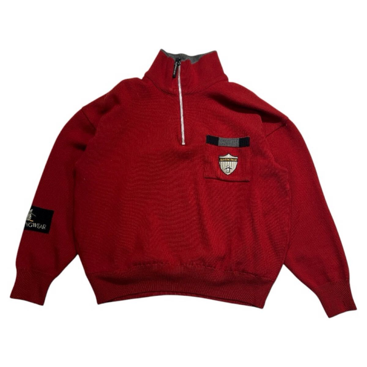 > ■ Munsingwear GrandeSlam マンシングウェア グランドスラム ■ ペンギン ロゴ 刺繍 ハーフジップ ウール ニット ゴルフ セーター L