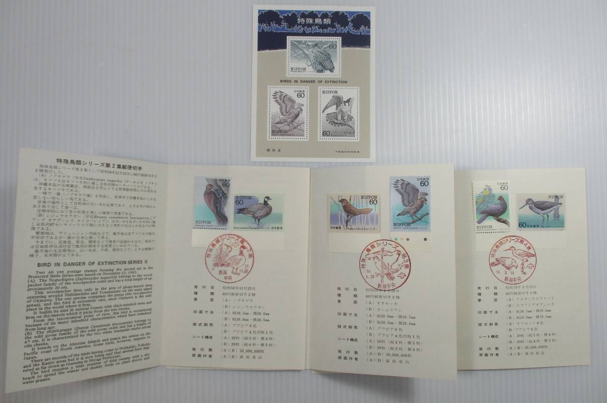 - K-923 特殊鳥類シリーズ郵便切手 1シート 第2回 第3回 第4回 3シート 初日カバー 計4シート 未使用 額面540円