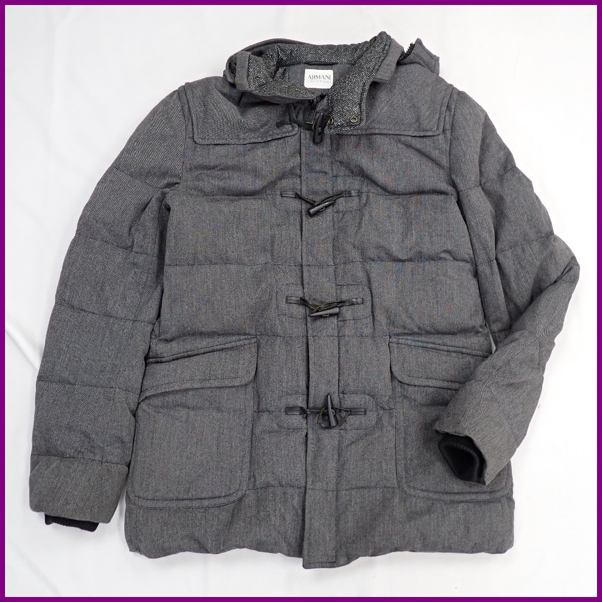 - ★ARMANI COLLEZIONI/アルマーニコレツォーニ フード付き ダウンジャケット 48/メンズLL相当/グレー系/トグルボタン/若干難あり&1375500710