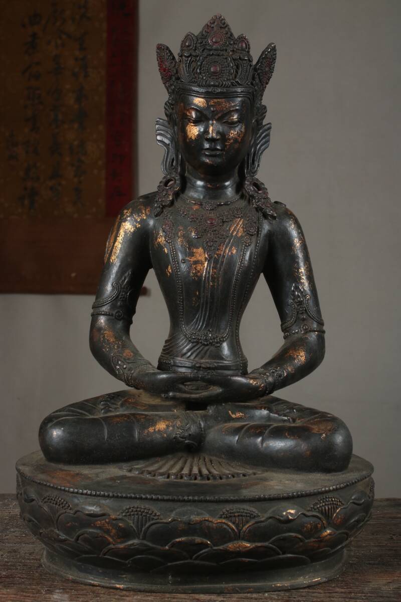 - 「早期收集 明代 古銅塗金 菩薩 度母 仏母 長寿仏 仏像 供奉置物 仏教古美術」時代物 古董品 旧家蔵出し 唐物 中国古玩 古美術品