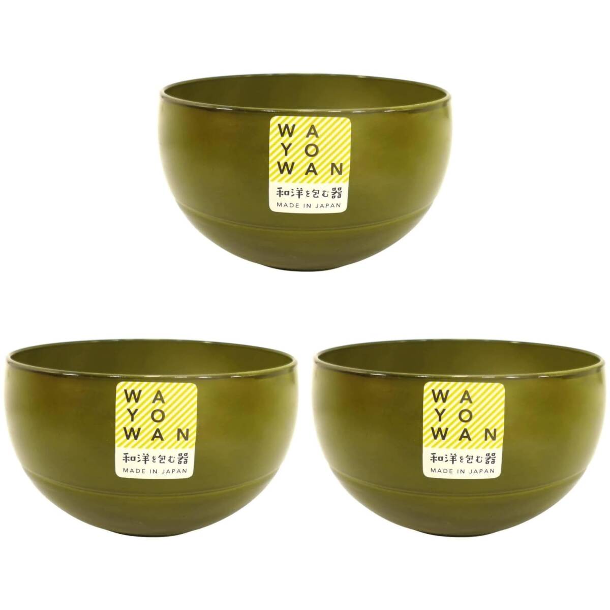- アサヒ興洋 お椀 大椀 丸型 カーキ 3個セット 日本製 食洗機対応 電子レンジ対応 手になじむ WAYOWAN AZ16-24