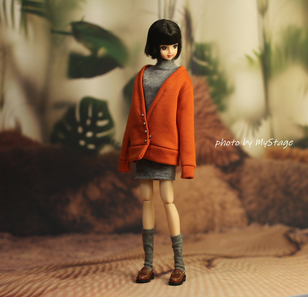 - 人形服msdr-25-5040オレンジ上着と灰色ハイネックワンピース(momoko、ジェニー用)
