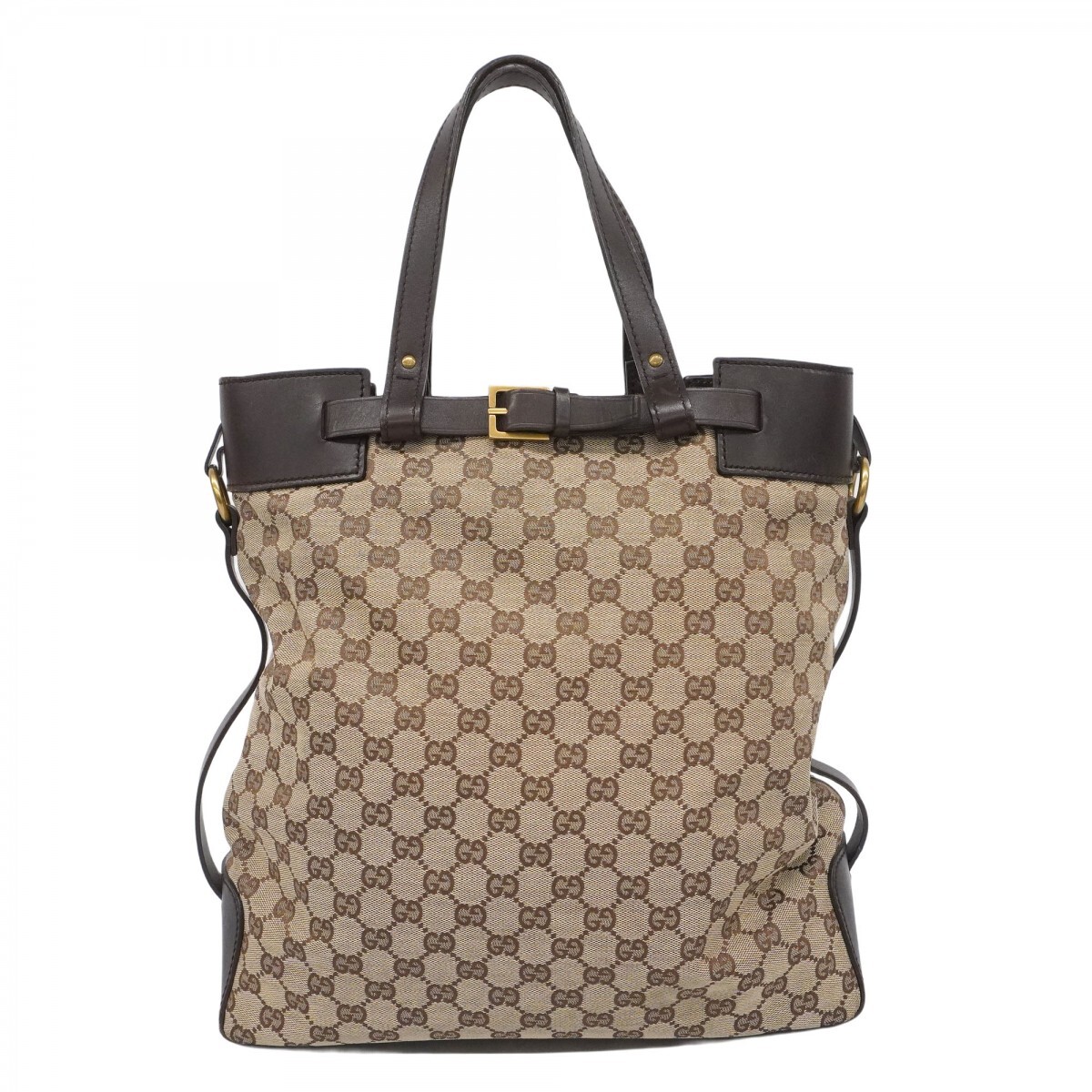 - 【5ob0543】グッチ トートバッグ GGキャンバス 107756 キャンバス ベージュ ブラウン ゴールド金具【中古】レディース