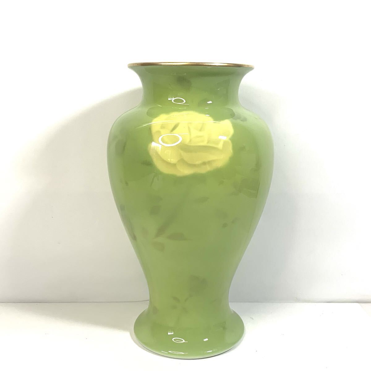 - 深川製磁 花瓶 花入 花器 フラワーベース 薔薇 バラ 色絵彩磁 金彩 インテリア