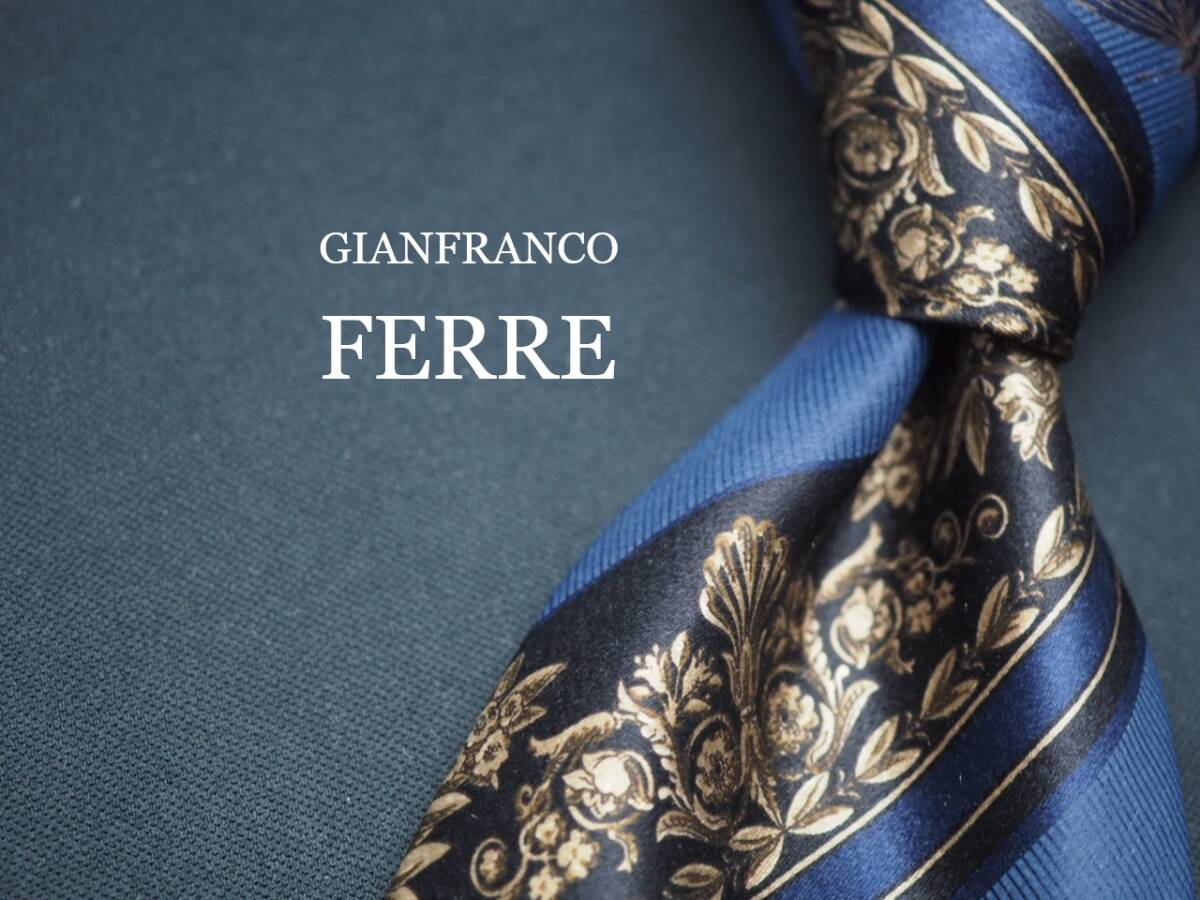 > 美品【GIANFRANCO FERRE ジャンフランコフェレ】 G1225 蝶 ネイビー ゴールド系 SILK ブランド ネクタイ 古着 良品 転売 仕入