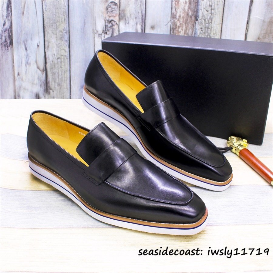 - 最高級*10万超 メンズ ローファー スリッポン職人手作り 本革 レザーシューズ 牛革 紳士靴ドライビングシューズ 軽量 革靴 ブラック 24.5cm