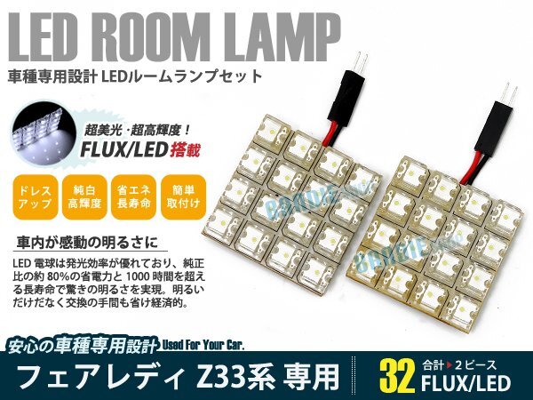 > Z33系 フェアレディ 2ピース 合計32ブロック発光 ルームランプ LED化 白発光 高輝度FLUXタイプ 一台分セット