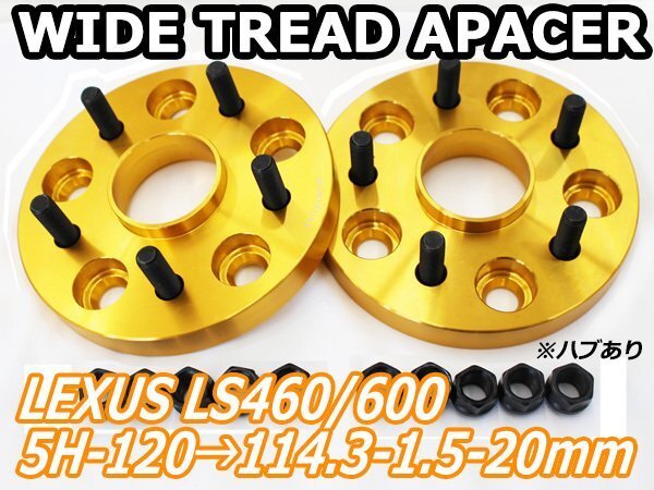 - LS460/LS600 ワイドトレッド PCD変換 5H1205H114.3 20mm 2枚 ハブあり ゴールド