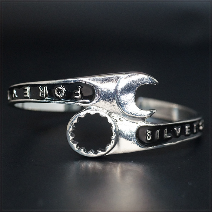 > [BANGLE] Black & Silver ブラック エナメル 彩色 FOREVER SILVER925 スパナ メガネレンチ コンビネーションレンチ デザイン C形 バングル