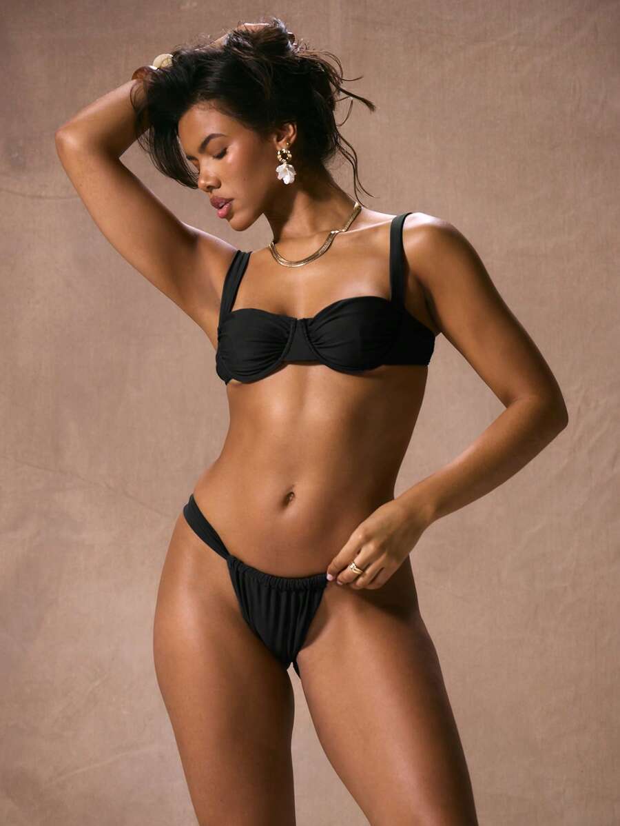 - レディース 水着 トップス ワイヤー入り ギャザーカップ 太ストラップ タイバック ビキニトップ バケーション 春夏 エレガント