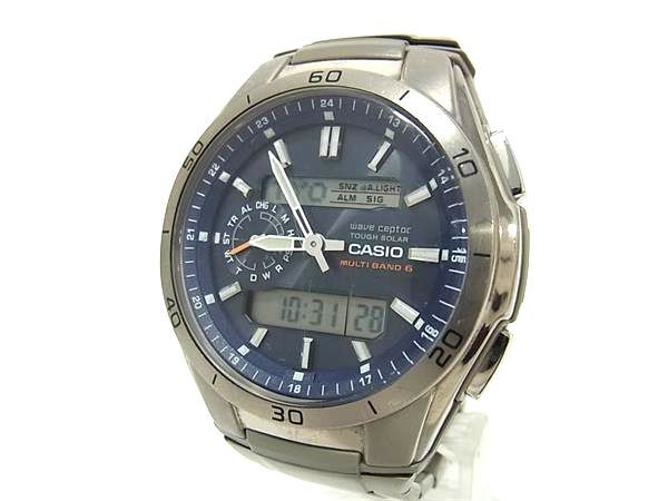 > 1円 ■稼働品■ CASIO カシオ WVA-M6501 ウェーブセプター SS 10気圧防水 ソーラー電波 腕時計 ウォッチ シルバー系×ネイビー系 BQ2681