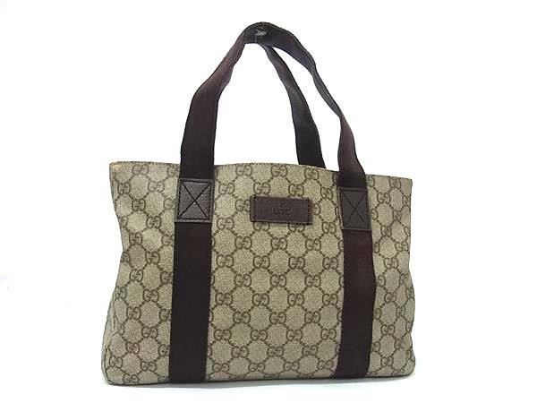 > 1円 GUCCI グッチ 141976 002214 GGスプリーム GG柄 PVC×レザー ハンドバッグ トートバッグ レディース メンズ ブラウン系 BQ2608